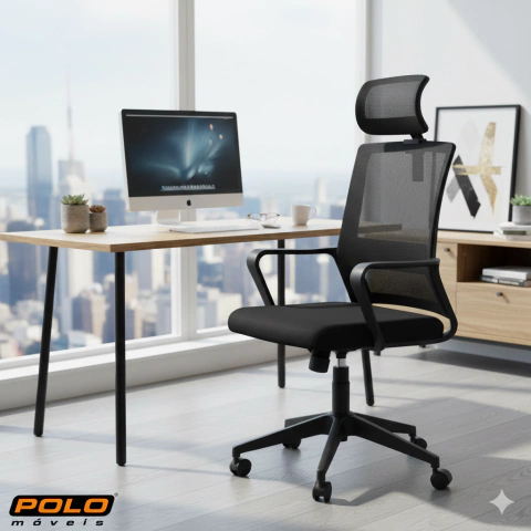 Seu design ergonômico com tela respirável oferece suporte ideal para longas horas de trabalho, garantindo frescor e bem-estar.